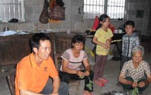 我被分到了第三組,也是這次家訪去的最遠(yuǎn)的地方。和董啟凡,楊愫愫等隊員一起需要走過崎嶇不平的山路,爬上一座一千多米的高山。有的隊員穿的是短褲,當(dāng)?shù)厣缴嫌幸环N草是有著尖利的刺,劃傷了隊員的腿,這提醒了我們出去家訪一定要穿長褲。一個半小時后,他們到了第一位學(xué)生陸純的家里。陸純的家由于在建新房,全家人在簡易帳篷里生活,條件十分簡陋。志愿者受到了陸純家長的歡迎,陸純的班主任沙士博也跟家長溝通了陸純在學(xué)校的表現(xiàn)和情況。陸純是一個比較聰明的孩子,數(shù)學(xué)成績比較好,但平時比較貪玩,上課的時候不愿意舉手發(fā)言。班主任把這些情況反映給家長后,陸純的媽媽表示以后一定多多抽時間來多關(guān)心孩子的學(xué)習(xí)和生活。最后隊員董啟凡幫一家人拍了一張全家福...[詳細(xì)]>>>