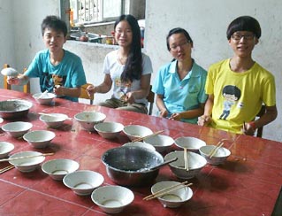 2013年7月7日,44名“蛋蛋在行動”隊員分三批走進(jìn)陽光小學(xué)、田壩小學(xué)、隆林小學(xué),開展為期三周的支教幫扶。在受教小學(xué),他們除開設(shè)日常課程外,還開設(shè)了心理勵志、環(huán)球視野、益智游戲等課。他們帶去了物品、資金,援助受教小學(xué)經(jīng)濟(jì)困難學(xué)生。贈送一系列少兒圖書給受教小學(xué),建立簡易圖書館,擴(kuò)大小學(xué)生知識面...詳情>>> 在廣西貴州三所小學(xué)的20多天時間里,除去日常教學(xué)環(huán)節(jié),支教團(tuán)成員們與孩子們同吃同住,一起生活。