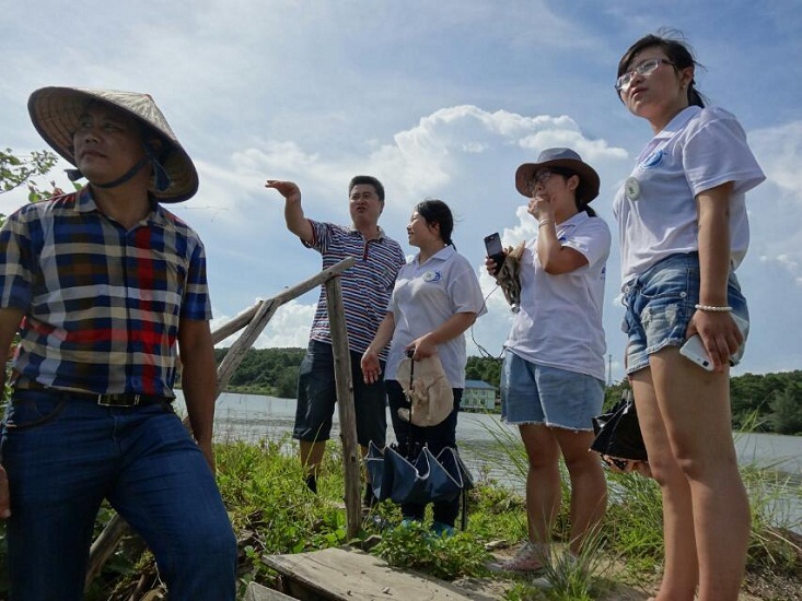 同一時(shí)間,團(tuán)隊(duì)的女生頂著毒辣的日頭趕到防城港,與廣西紅樹林研究中心珍珠灣野外工作站的鐘云旭站長(zhǎng)、羅硯科長(zhǎng)共同參觀生態(tài)養(yǎng)殖基地,了解基地目前的養(yǎng)殖及收獲狀況。目前該基地在魚類養(yǎng)殖中已取得部分成效,并已實(shí)現(xiàn)了半生態(tài)的養(yǎng)殖。