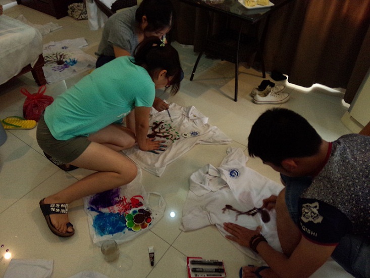 團(tuán)隊(duì)成員在自己的T恤上動(dòng)手繪制“手”護(hù)紅樹林圖樣