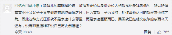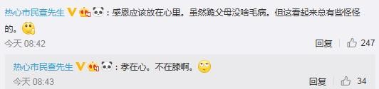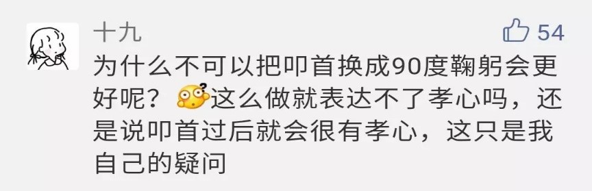 網友“最酷的仔啊”:有很多表達感恩又不失古蘊的方式,為什么偏偏選擇了叩首這種極端的方式?