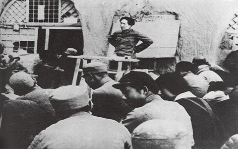 延安整風(fēng)期間我們黨強調(diào),反對主觀主義以整頓學(xué)風(fēng),反對宗派主義以整頓黨風(fēng),反對黨八股以整頓文風(fēng)。圖為整風(fēng)運動時,我軍某部連隊指導(dǎo)員在給戰(zhàn)士們講課。