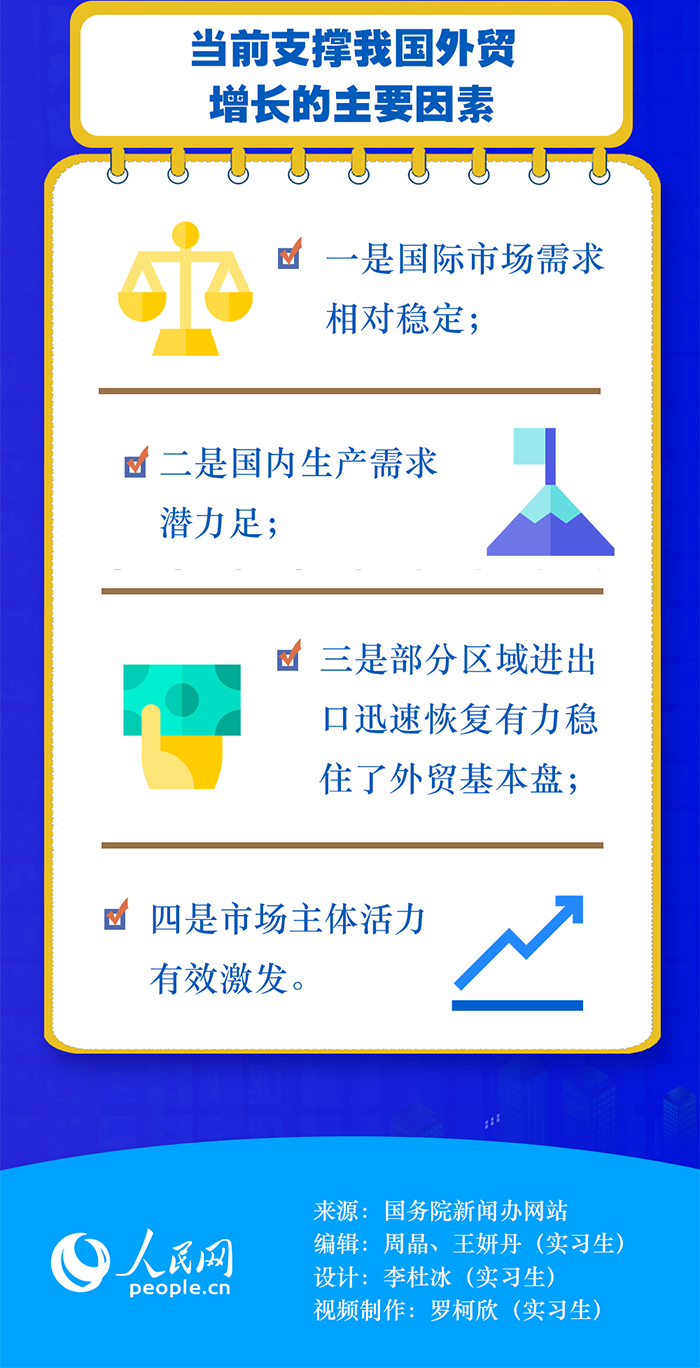 商務(wù)部原副部長(zhǎng)魏建國(guó)在接受人民網(wǎng)“強(qiáng)觀察”欄目記者采訪時(shí)表示,上半年的外貿(mào)增長(zhǎng)主要有三方面原因:首先,高效統(tǒng)籌疫情防控和經(jīng)濟(jì)社會(huì)發(fā)展取得實(shí)效。其次,多措并舉穩(wěn)市場(chǎng)主體。隨著國(guó)家穩(wěn)經(jīng)濟(jì)一攬子政策措施的落地見效,外貿(mào)保穩(wěn)提質(zhì)等各項(xiàng)工作加快推進(jìn),我國(guó)外貿(mào)市場(chǎng)主體活力有效激發(fā)。此外,以國(guó)內(nèi)大循環(huán)為主體、國(guó)內(nèi)國(guó)際雙循環(huán)相互促進(jìn)的新發(fā)展格局的作用正在發(fā)揮出來(lái)。