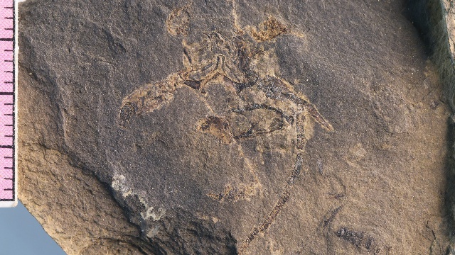 “2015年的一次普通野外踏勘工作中,我的學(xué)生代旭在一塊黑色頁巖上發(fā)現(xiàn)了一枚非常奇特的化石碎片。”宋海軍介紹,后來經(jīng)鑒定這枚化石是在早三疊世海相地層中罕見的龍蝦化石碎片。